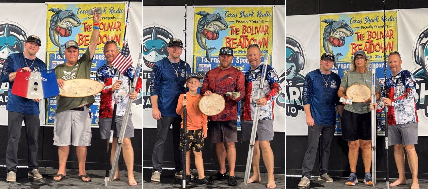 - Overall Winner: Congratulations to Larry Black of Dickinson, whose shark stringer totaled a jaw-dropping 251.5 inches, earning him the top prize and a place in Bolivar fishing history.
