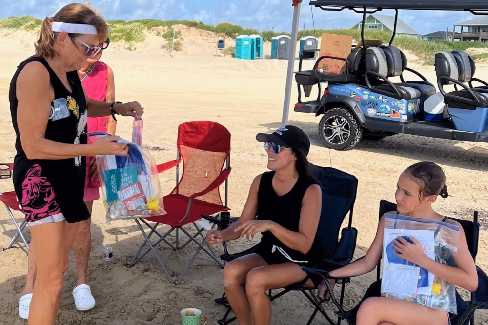 On June 10, 2025 a group of Bay Vue Methodist Women stuffed 144 reusable storage bags with VBS crafts, coloring books, colors, toys and snacks and sent 48 of them to Bay Vue’s thrift store, Second Going, located at 1050 Bay Vue Rd. in Crystal Beach, and kept 96 others to pass out on the beach. On July 12, 2025 we set out in four golf carts to distribute our other 96 bags. Many thanks to our drivers and their crews; Ronnie Clarkston, carrying Kathy Clarkston, Carole Chambers and Betty Williamson, Earl Hines, carrying Sandi Covington and her granddaughter Bre Bohannon, Don Evans, carrying Jo Evans and Leslie and Roy Kinkaid and Pat Tinsley, carrying Elinor Tinsley and Linda Elissalde. We set out at 10 AM with each cart covering roughly 25 barrels, from barrel 1 – 100.