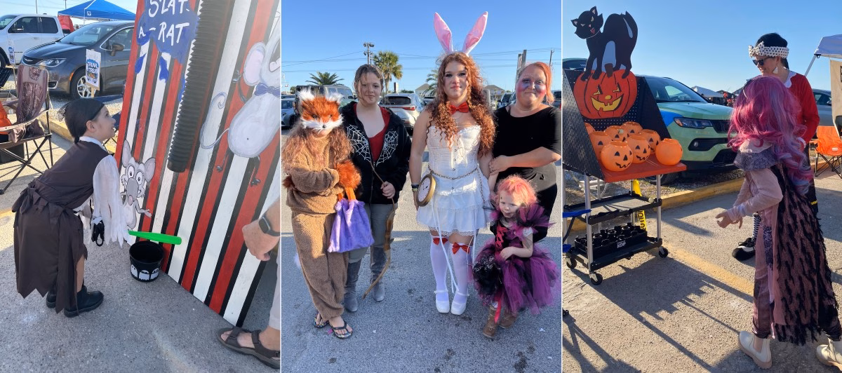 Ghouls, girls, boys, kings, queens, dinosaurs, minions and unidentifiable characters poured into this unusual world. Patrons could cakewalk, engage in competitions, explore a haunted house, visit TRUNK OR TREAT and eat enough hot dogs and candy to last until next holiday. Local businesses, public works, clubs, churches and private citizens contributed by providing food, drinks, prizes and presents. Everything was free for participants be they young, middle age, or eligible for Social Security. The Bolivar Peninsula proved again that it is a generous community. Many thanks go to all these gracious donators.