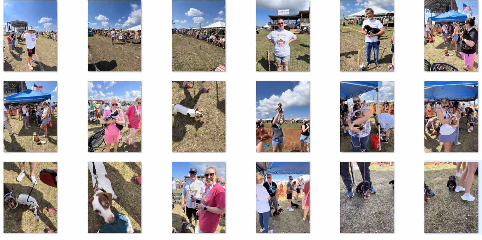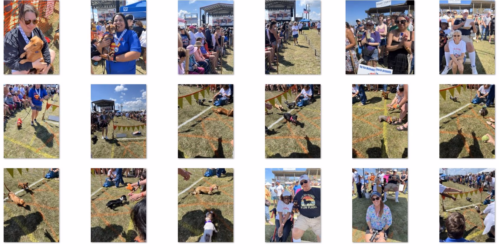 With an initial 72 dogs being registered, the owners then needed to provide updated shot records, proof of breed to keep the race true and fair and a current photo of the dog so no imposters. The list began dwindling down for one reason or another, and the night before the race we had 43 dogs that were fully registered and ready to go. On race morning we had 36 dogs check in to race, with a couple barely making the 10:40 SHARP deadline. You don’t know how many heats you are running until you know how many dogs are racing. With six initial heats, four semifinal heats, and the championship races, we got to see lots of wiener dog action. You could tell that this wasn’t the first race for many of the dogs, but for some it was pretty obvious that it was. We had two video cameras at the finish lines recording the finish of each race and never had to review the videos until the championship race, and were so glad we had it. The judges did not all agree on first and second place until the videos were reviewed and we had a clear winner…by a nose…