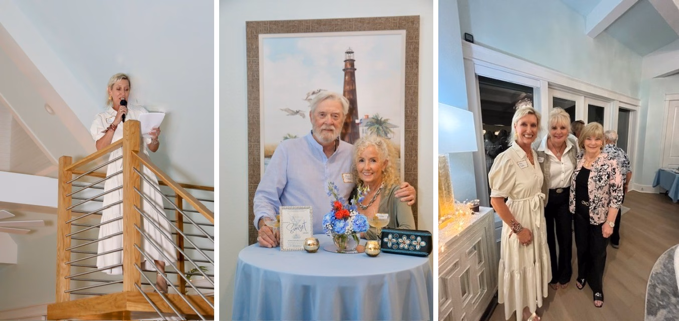 The Ezzells named their beach house The Crystal Lighthouse. It certainly sparkled as a beacon for this party with a special purpose. Amy Maxwell Chase’s dream of rebuilding our Bolivar Point Lighthouse is closer to becoming a reality because of David and Diana’s KEEPER’S SUNSET SOIRÉE.
