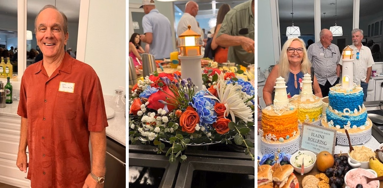 It was a magical evening. Crafted cocktails of all types, appetizers, and charcuterie were consumed. Elaine Rollfing’s famous lighthouse decorated cakes quickly disappeared. Attendees mingled to visit with friends, relatives and make new friends. Many discovered connections that they had not previously known. Folk quietly made donations or participated in the fund raising silent auctions during this happy gathering.