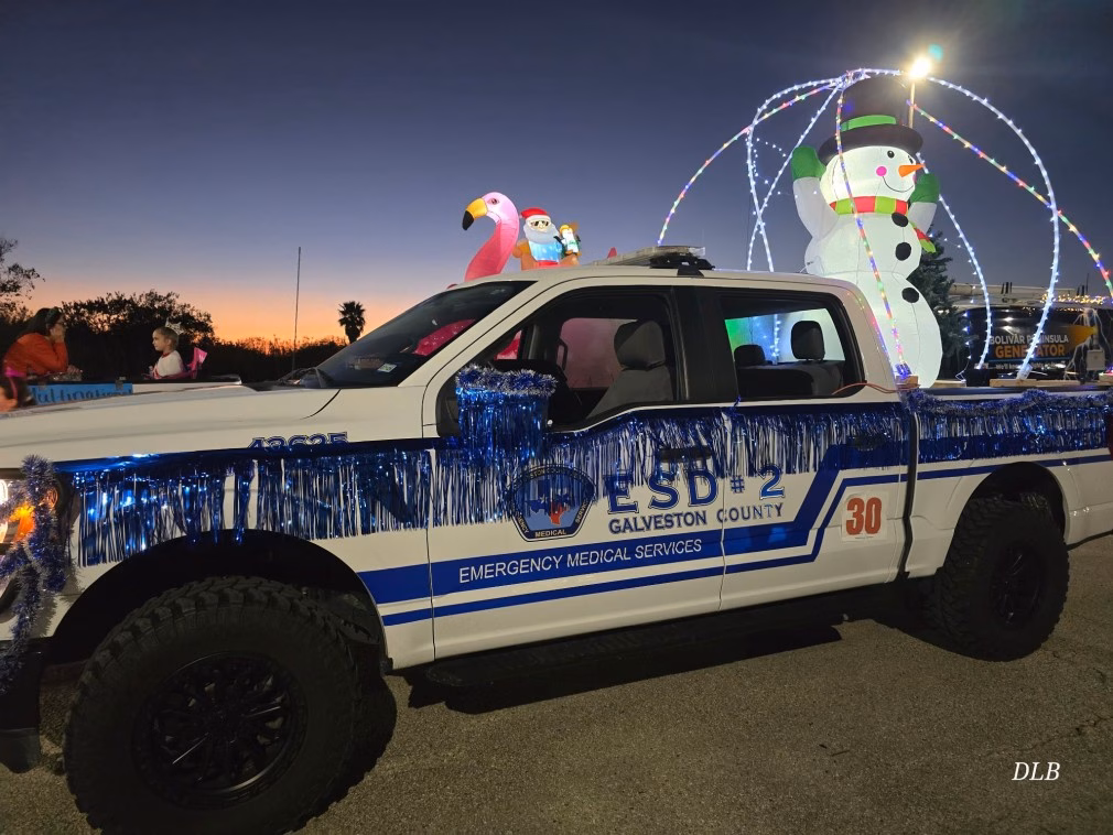 I hope you’ve all been Nice and Not Naughty. Rumor has it that the Jolly Ol’ Elf Himself will be gracing our little community this next week. He’s scheduled to be arriving in high fashion all around town. The Eagles, The Big Store, What to my wondering eyes should appear Santa & one of his elves Saturday at the Crystaland Parade. He greeted kids at the Crystal Beach Fire Station that night and handed out trophies to the vehicles, floats and golf cart winners of the parade. Oh, what a treat!